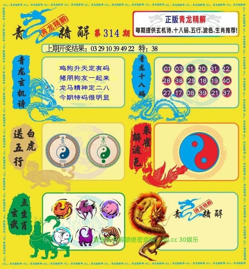 314期:鸡狗升天定有码,猪朋狗友一起来,龙马精神定二八,今期特码很明显